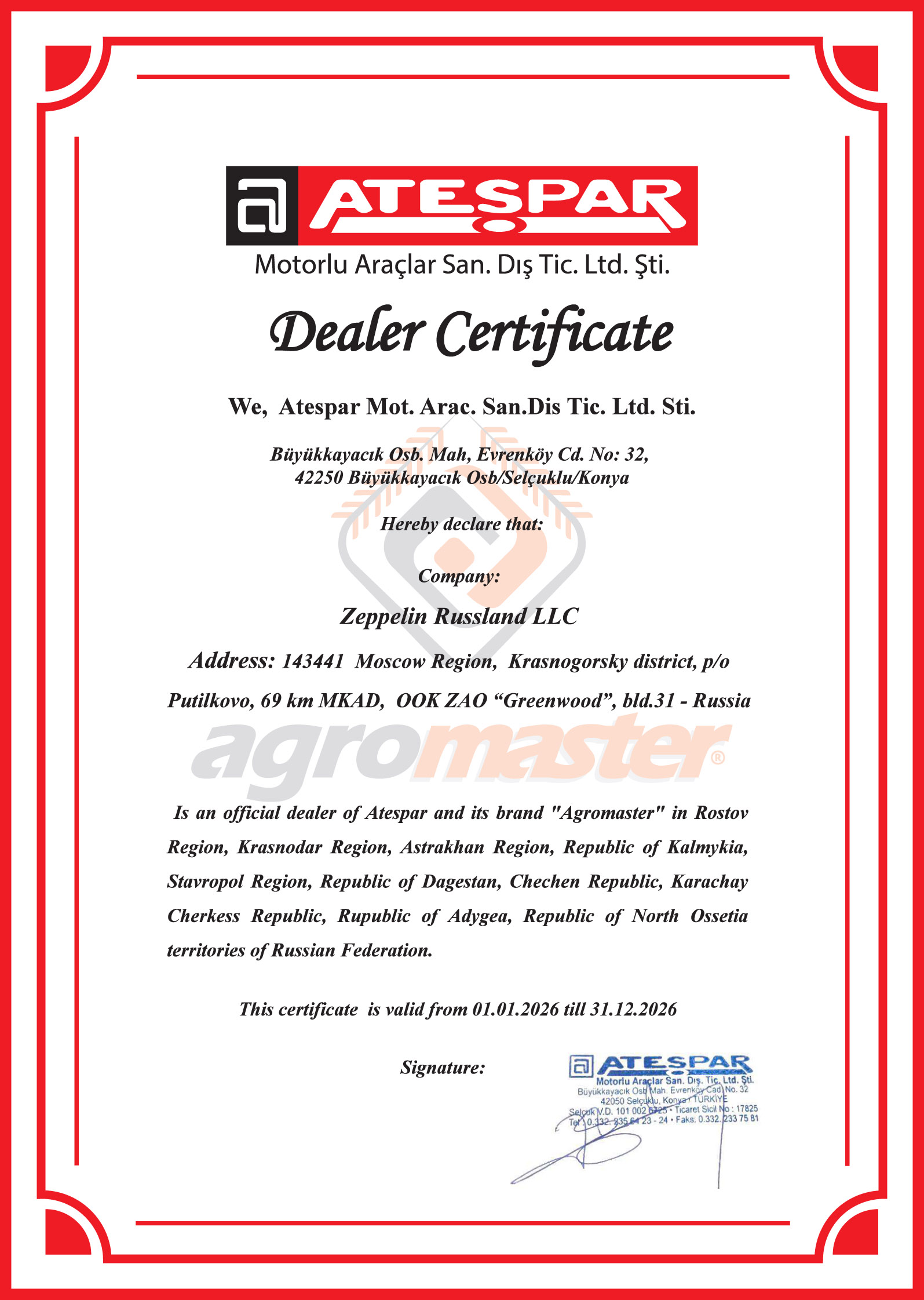 Мы делаем упор на высококачественные продукты и квалифицированные услуги в сочетании с высочайшими стандартами качества. Таким образом, мы добиваемся долгосрочных успехов, которые позволяют стать надежным партнером для наших клиентов и ведущей компанией на рынке сельхозтехники.